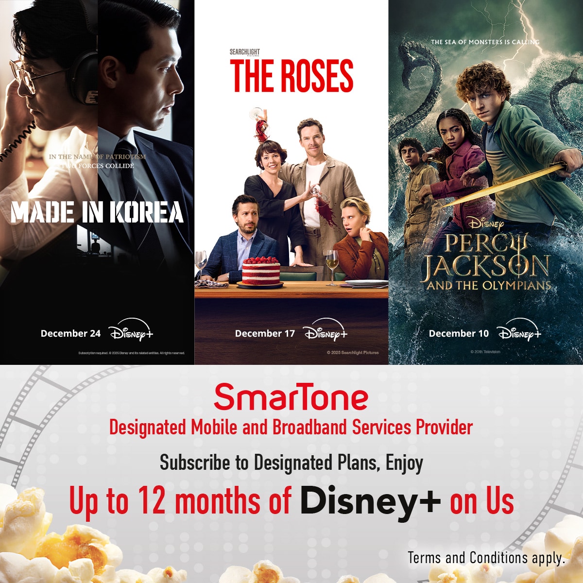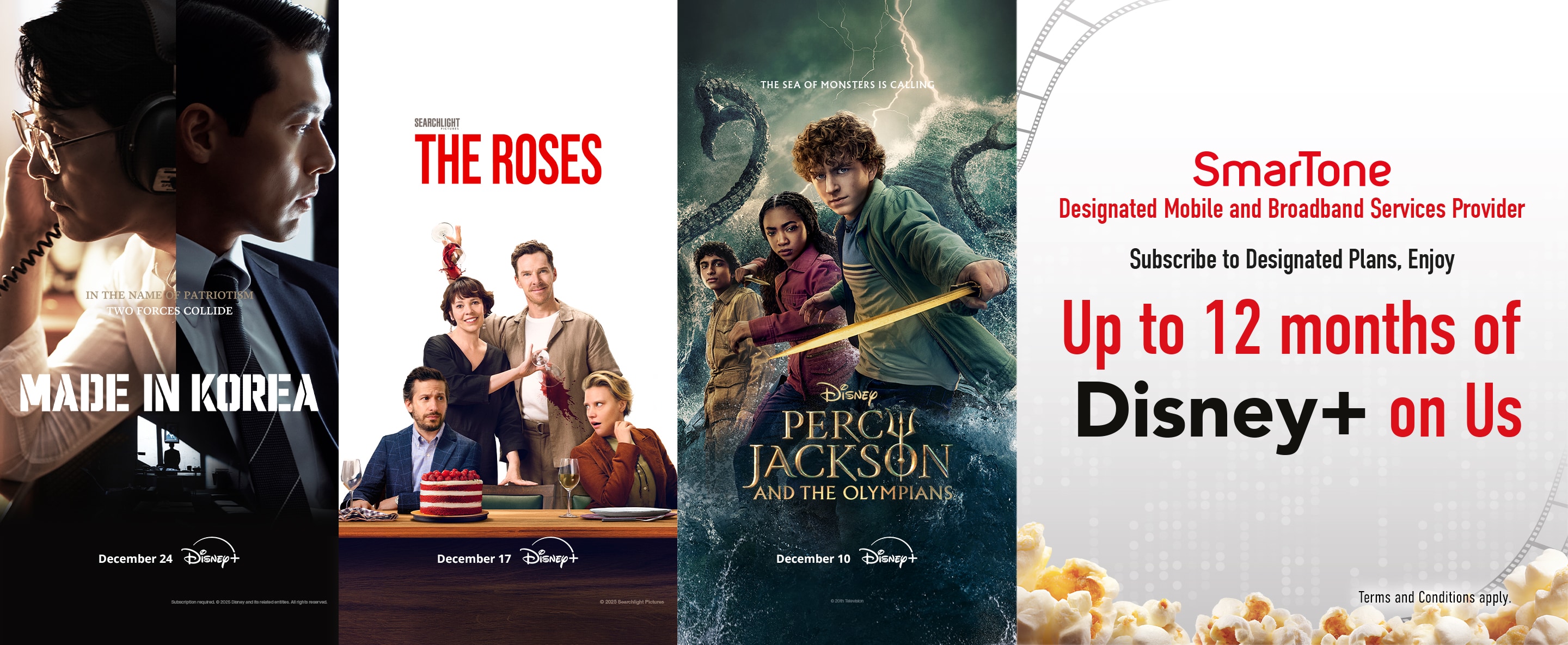 Customers who subscribe to a designated service plan (mobile monthly service plan or Home 5G Broadband monthly service plan) under a fixed-term contract and sign up for a Disney+ service contract for a designated subscription period, are eligible to enjoy a designated subscription period of Disney+ Standard/Premium plan (as the case may be).
