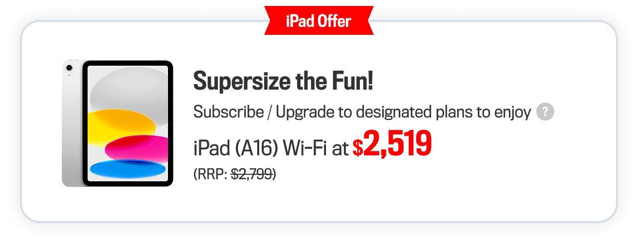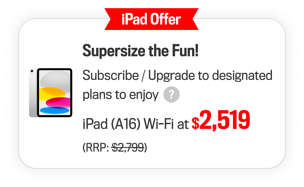 General Terms and Conditions: Each designated contract subscription is entitled to the above offer once only. The Company reserves the right to offer an alternative gift of equivalent or approximate value. This offer cannot be used in conjunction with other subscription / re-contract / upgrade / Add-on SIM card offers. The above offers will be forfeited if the customer changes to other service plans/ cannot activate the service in 180 days upon the contract subscription, and the Company has the right to charge the full amount of the gift without prior notice. This offer cannot be transferred to any third party and is neither refundable nor exchangeable for cash. The Company reserves the right of final decision relating to the promotions and any dispute thereof, and may change the terms and conditions without prior notice. Subject to relevant terms and conditions please ask our store assistants for details.
