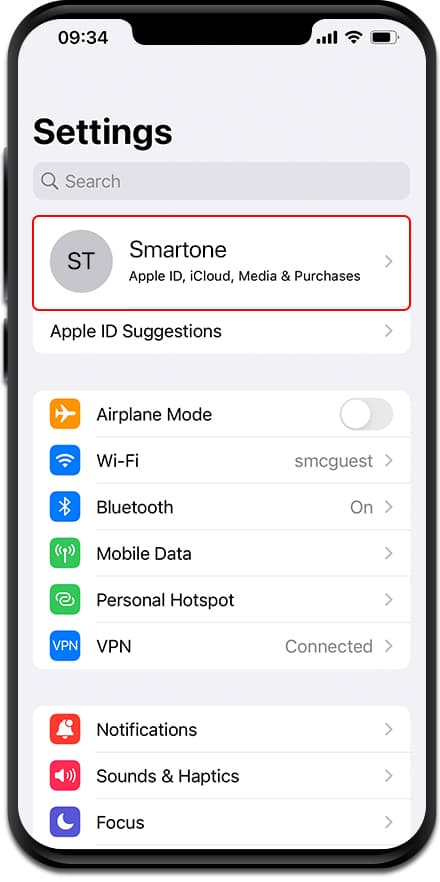 - Open “Settings”, then tap (or sign in to) your Apple ID.