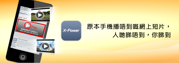• X-Power 畀 你 喺 瀏 覽 網 頁時 睇 到 你 部 手 機 同 平 板 電 腦 原 本 唔 支 援 嘅 網 上 影 片