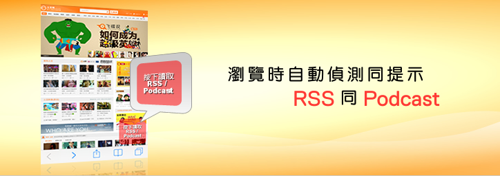瀏 覽 網 頁 時 自 動 幫 你 偵 測 同 提 示 RSS 同 Podcast 嘅 內 容