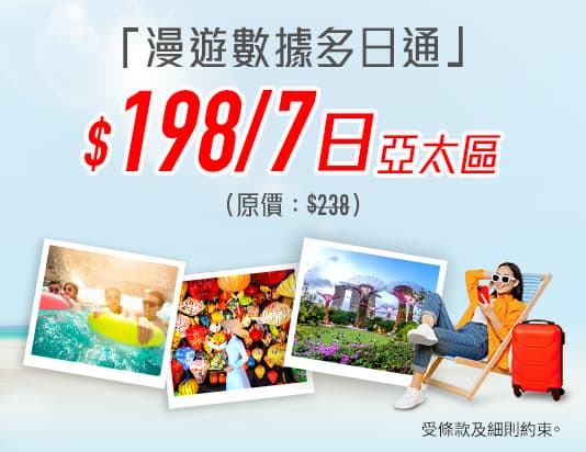 | 亞太區漫遊數據多日通 | 中國內地及澳門數據漫遊數據組合 | |